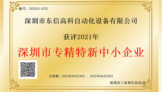 熱烈祝賀我司獲評(píng)2021深圳市專(zhuān)精特新中...